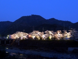 金山橋から馬瀬川の約 200 m上流の境橋にかけても、 ソメイヨシノ 21 本 の桜並木があります(ライトアップはありません)。大船渡ダムから南へ約500mの地点です。