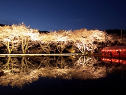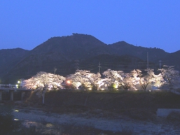 金山橋から馬瀬川の約 200 m上流の境橋にかけても、 ソメイヨシノ 21 本 の桜並木があります(ライトアップはありません)。大船渡ダムから南へ約500mの地点です。
